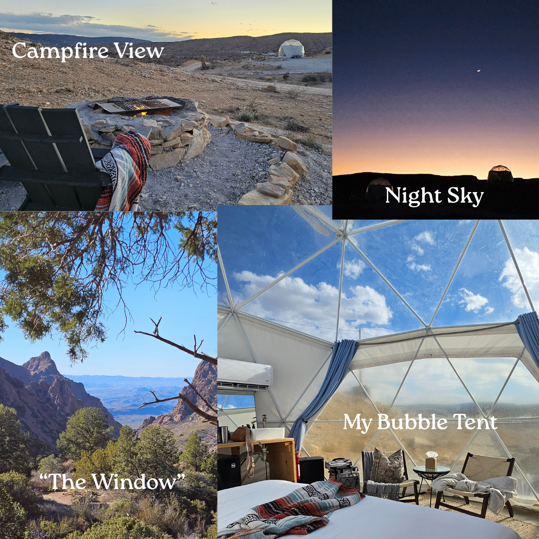 I chose the Big Bend area of West Texas because I had mostly happy memories from a chunk of my childhood spent there. I was familiar—even smitten—with the vast, wild, rugged landscape: the jagged mountains rising against endless sky, the desert floor dotted with creosote and ocotillo, the Rio Grande carving its brazen path through limestone canyons. Plus: starry nights, solo hikes, all the nature-gazing I could handle. What could be better?